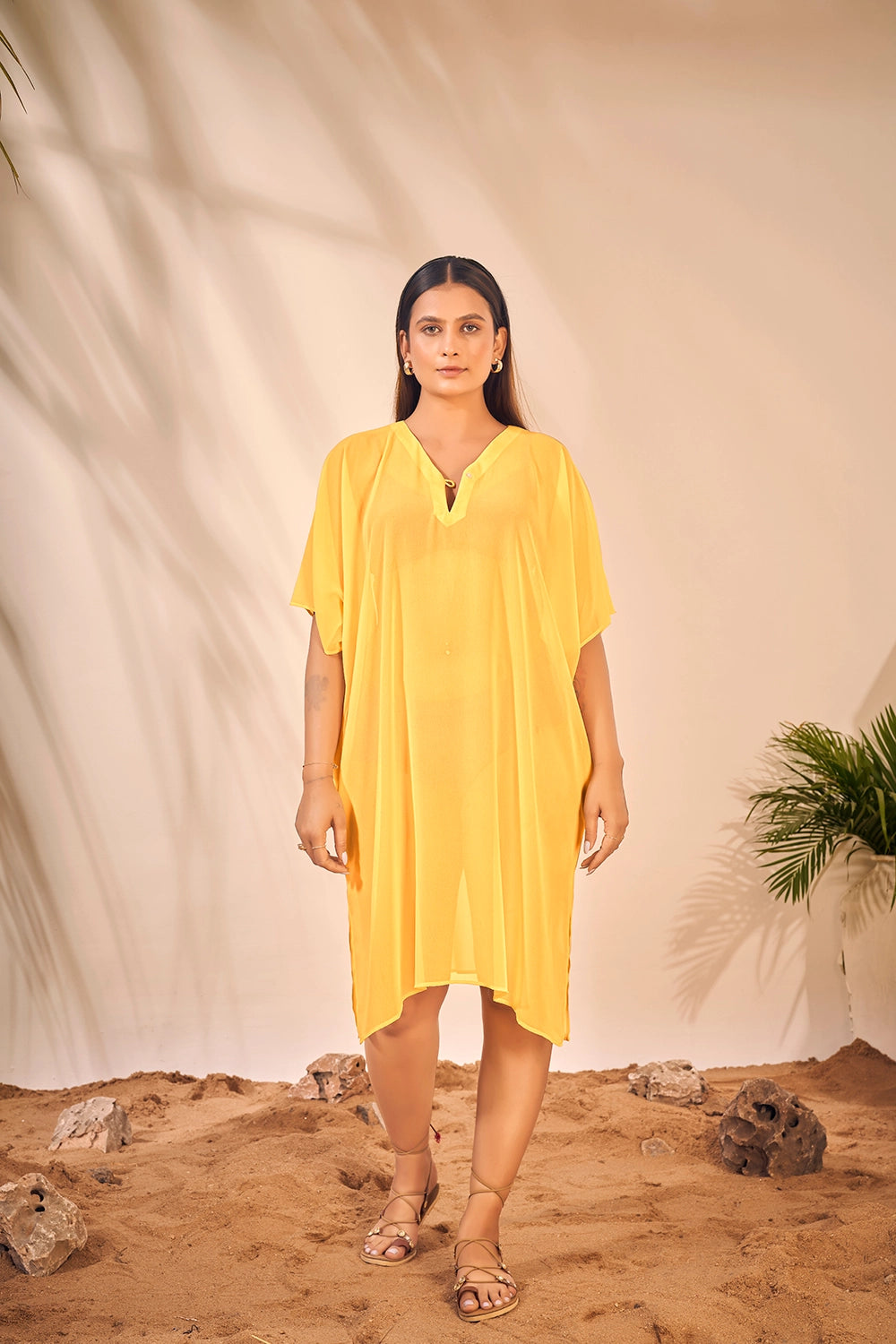 Elegant Georgette Swim Cover-Up – Mid-Thigh Length Kaftan with V-Neck